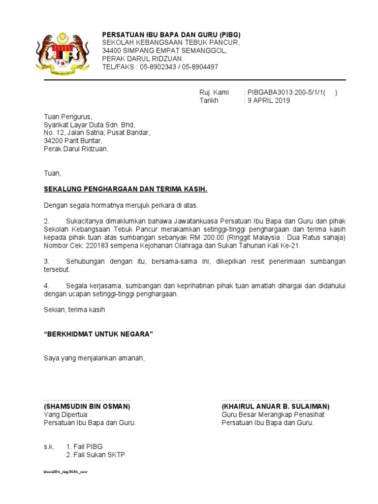 Berikut adalah pelbagai contoh ucapan. Contoh surat terima kasih atas sumbangan wang picture placed ang submitted by admin that preserved in our collection. Berbagai kegiatan yang dilakukan secara umum bisa saja membutuhkan sponsor.
