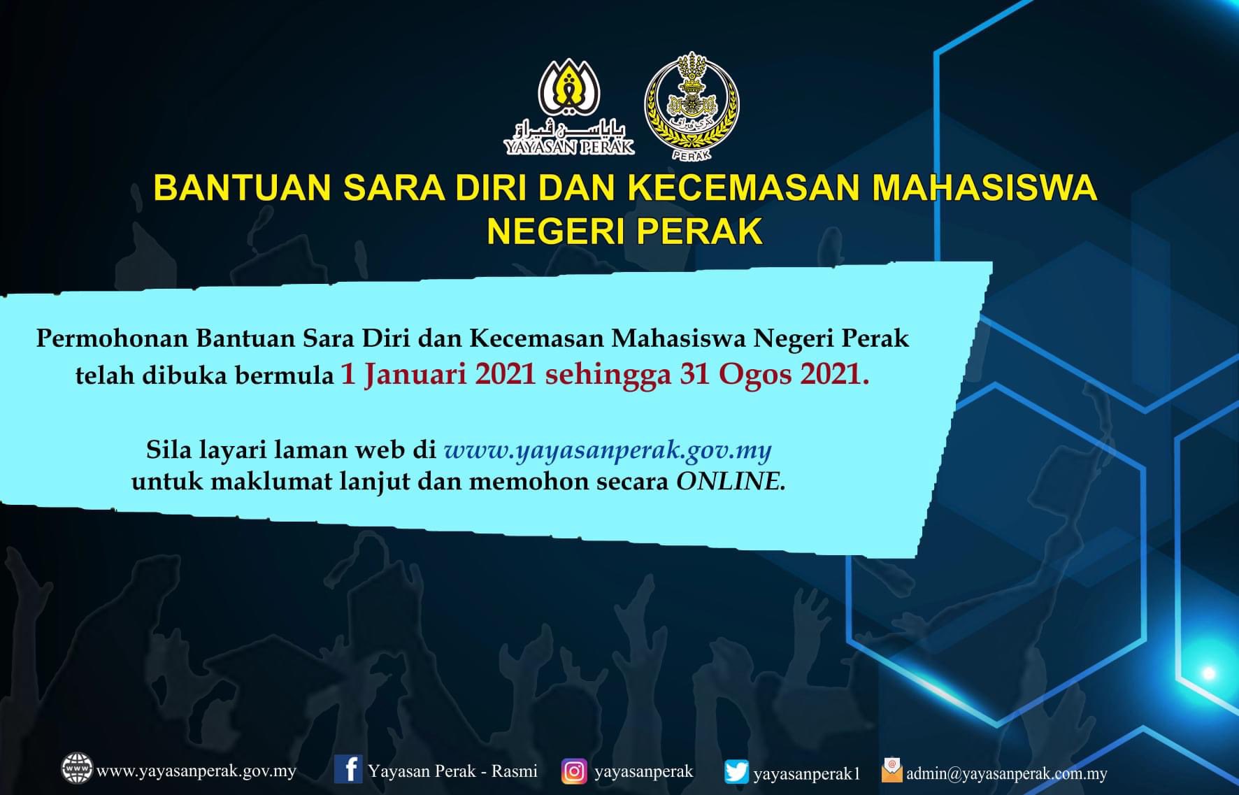 Yayasan Perak On Twitter Permohonan Bantuan Sara Diri Dan Kecemasan Mahasiswa Negeri Perak Telah Dibuka Bermula 1 Januari 2021 Sehingga 31 Ogos 2021 Sila Layari Laman Web Di Https T Co Plgc0dks13 Untuk Maklumat Lanjut